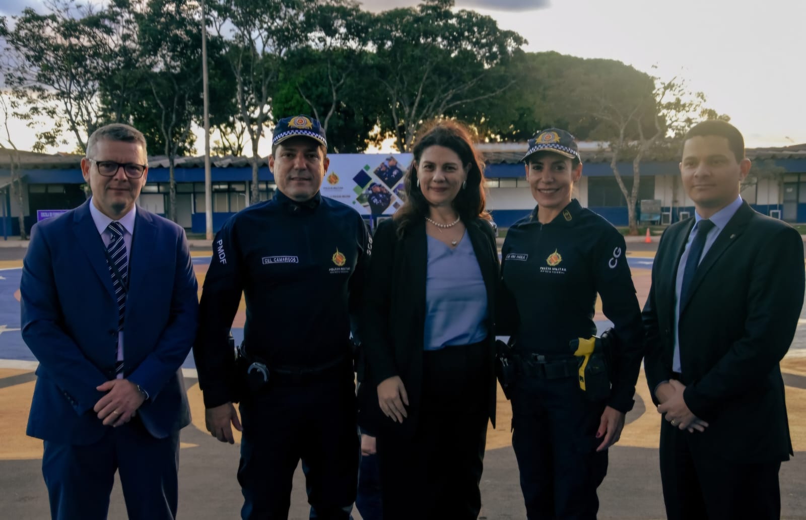 A cerimônia contou com a presença da comandante-geral da PMDF, coronel Ana Paula Barros Habka, e da diretora do Sistema Único de Segurança Pública, Isabel Seixas de Figueiredo, representando o secretário Nacional de Segurança Pública, Mario Luiz Sarrubbo.