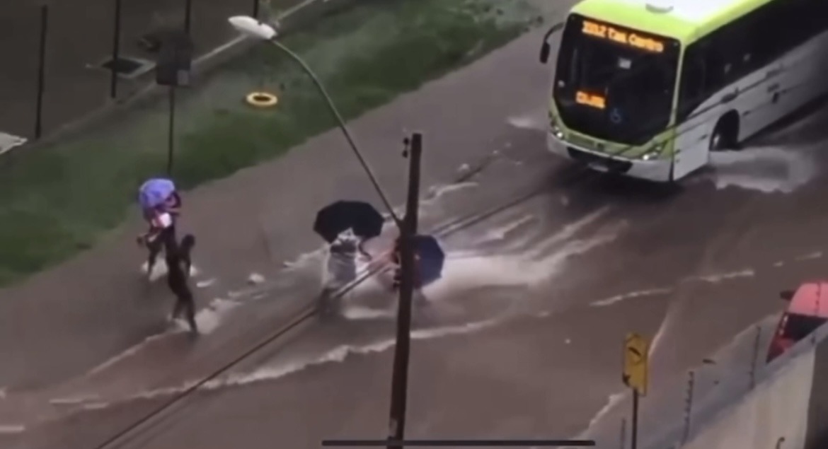 Em meio à forte chuva em Ceilândia, um momento de aflição foi registrado por uma moradora da região. Uma mulher foi arrastada pela enxurrada e acabou ficando presa debaixo de um ônibus. O caso aconteceu na tarde da última segunda-feira (5).