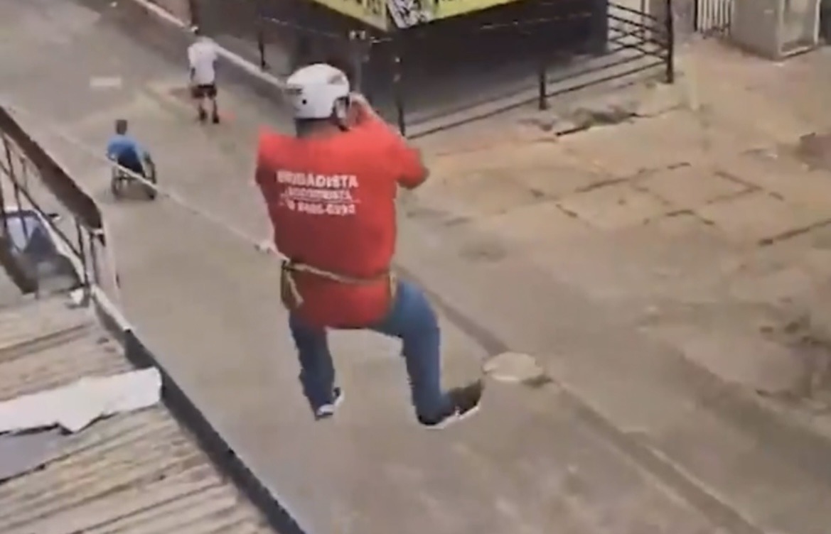 Um homem caiu de uma tirolesa durante um curso de brigadista realizado no Setor Comercial Sul, em Brasília. O caso aconteceu no dia 27 de janeiro, mas o vídeo viralizou somente nesta semana. Segundo informações do Corpo de Bombeiros Militar do Distrito Federal (CBMDF), a vítima foi socorrida queixando-se de dores no braço esquerdo, nas costelas do lado esquerdo do corpo e com um corte no supercílio.