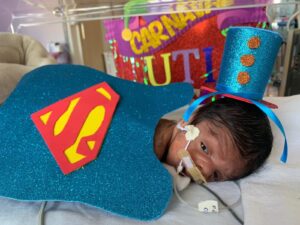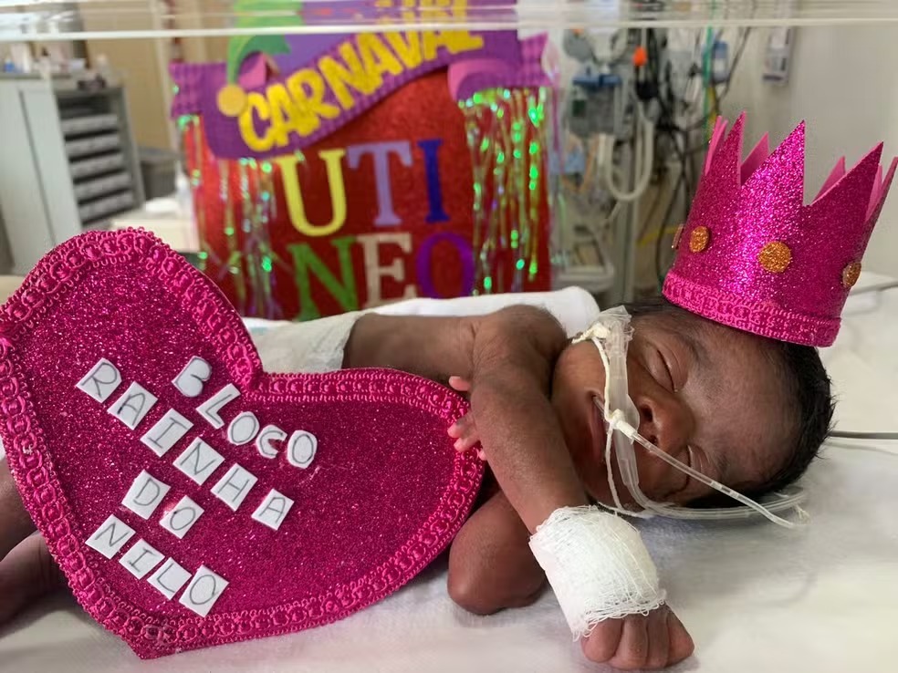 Bebês internados na UTI neonatal do Hospital Regional de Santa Maria participam de ensaio fotográfico de carnaval