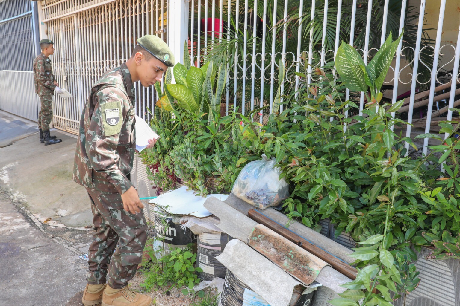 Nesta segunda-feira (12), Vigilância Ambiental e Exército Brasileiro inspecionaram casas da região em busca de focos do mosquito Aedes aegypti