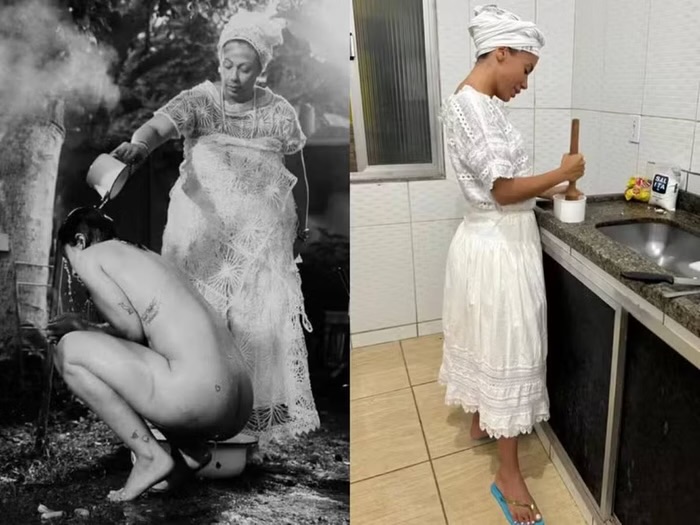 Anitta usou as redes sociais nesta segunda-feira (13/5) para mostrar um pouco de sua rotina no terreiro de candomblé. A cantora, de 31 anos de idade, postou um álbum em que aparece participando de rituais e de atividades na cozinha.