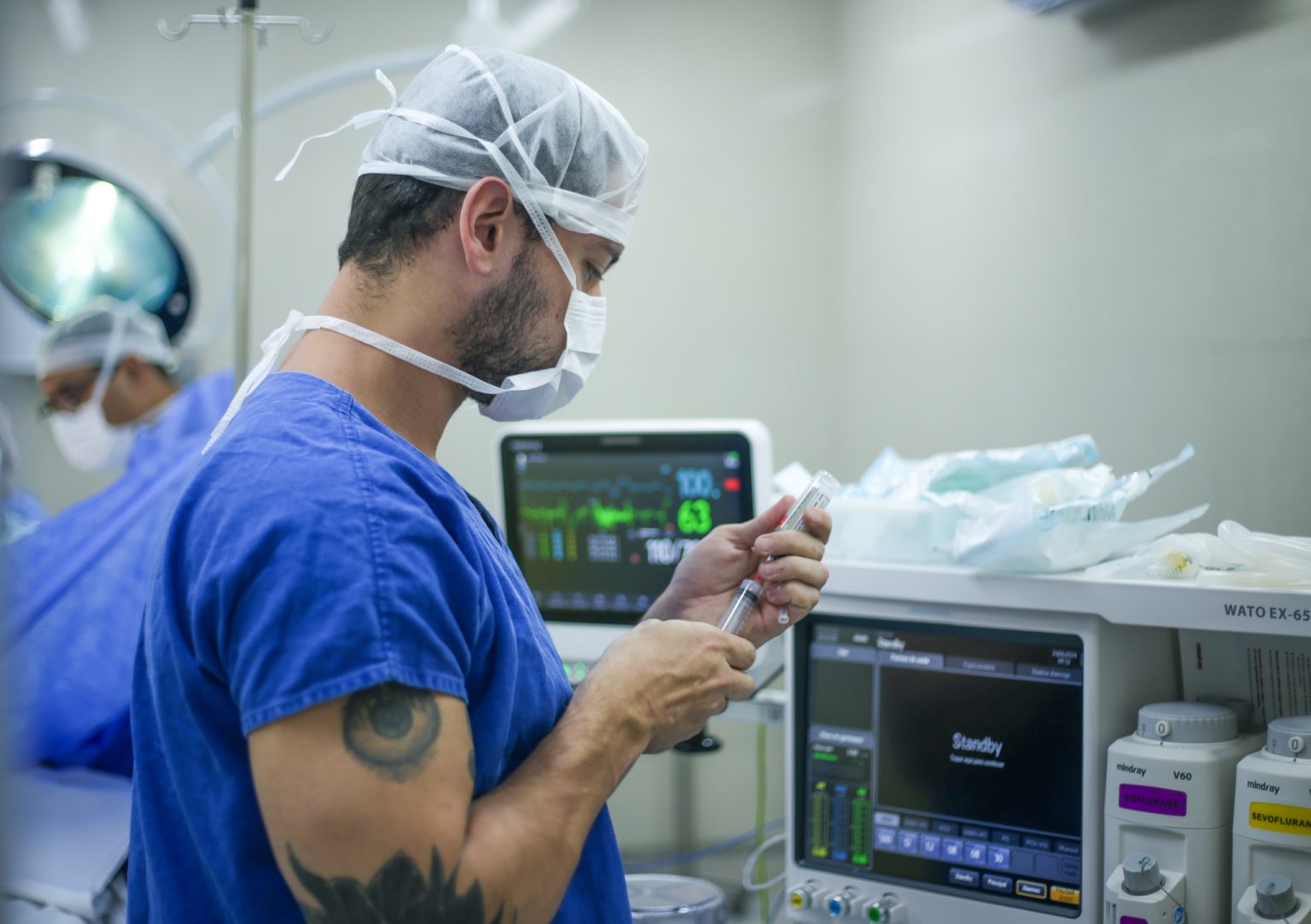 Enquanto os olhos de Corsi cuidavam de João, em uma das outras seis salas do centro cirúrgico do HRG, o anestesista contratado Vitor Hugo das Chagas Souza Silva se concentrava no paciente à sua frente. “Evitamos consequências à pessoa, damos conforto e mantemos a homeostase [equilíbrio interno no organismo] durante todo o procedimento”, detalha.