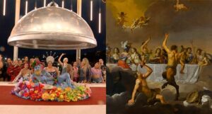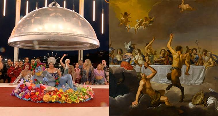 Uma das inspirações da cena é a pintura “Festa dos Deuses”, de Jan Harmensz van Bijlert. “A ideia era fazer um grande festival pagão ligado aos deuses do Olimpo”, disse Jolly. Em concordância com o artista, o Comitê Organizador dos Jogos Olímpicos (COJO) declarou, também neste domingo, que não houve a intenção de desrespeitar religiosos.