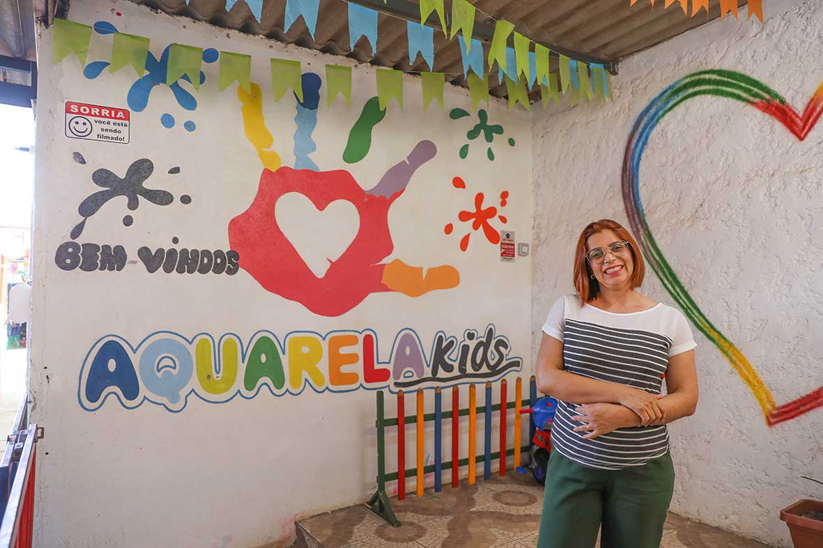 Trabalho que tem a participação e a coragem de pessoas como a empreendedora Janaína Saraiva, de 41 anos, apoiada por este GDF. Ela abriu uma creche para bebês e crianças em 2016 em São Sebastião. Em 2019, ela mudou o estabelecimento de endereço; e, com as reformas e adequações no espaço, vieram também as dívidas junto com a pandemia da covid-19.
