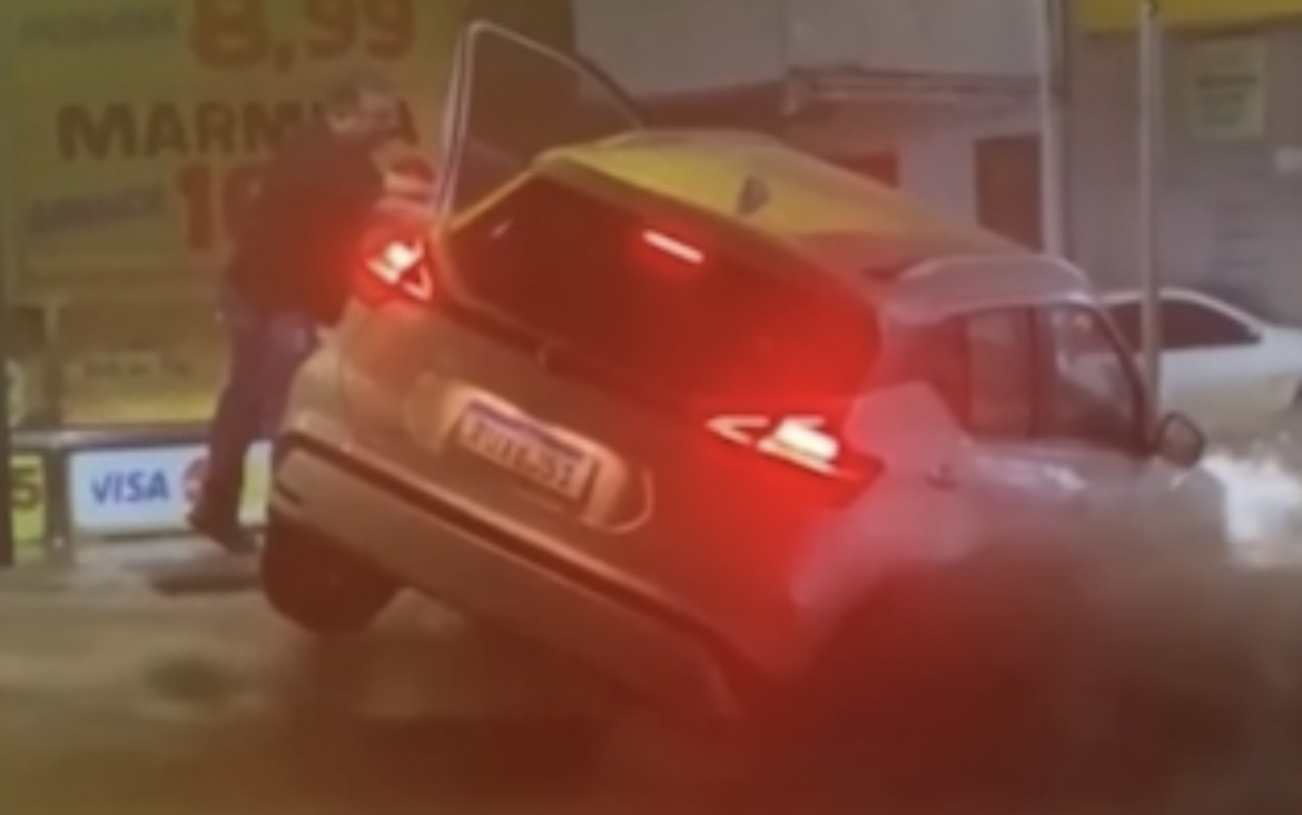 Como a porta do carro estava aberta, Wendel Márcio caiu na água e foi arrastado até o fim da rua, mas conseguiu levantar e se salvar.