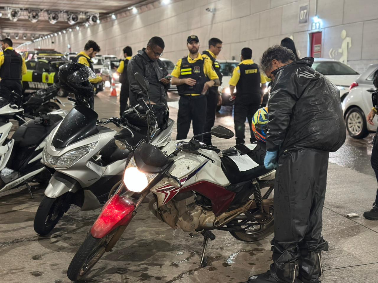Autuado em um ponto de blitz, um condutor inabilitado teve seu veículo retirado por condutor devidamente habilitado, mas, logo depois, foi flagrado em outro ponto de blitz em outra moto e, mais uma vez, recebeu autuação. O motorista que entregou a outra moto a esse condutor inabilitado também vai ser autuado por confiar um veículo a pessoa não habilitada.