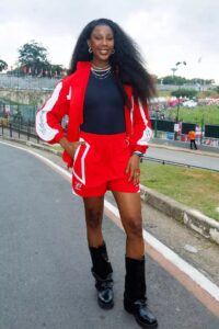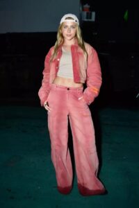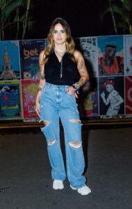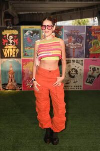 Jade Picon fugiu do preto e apareceu com um conjunto rosa manchado e boné. Ana Clara optou por um look colorido, usando cropped listrado e calça cargo oversized.  Já Camilla de Lucas escolheu um visual esportivo em vermelho e branco.