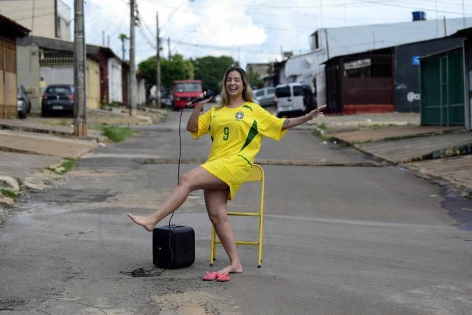 Vestindo a camisa da seleção brasileira e acompanhada apenas de uma caixa de som, a artista encantou o público de um boteco e, claro, os internautas! O vídeo já ultrapassou a marca de 1 MILHÃO de visualizações no Instagram e TikTok, e o número de seguidores da cantora só cresce!