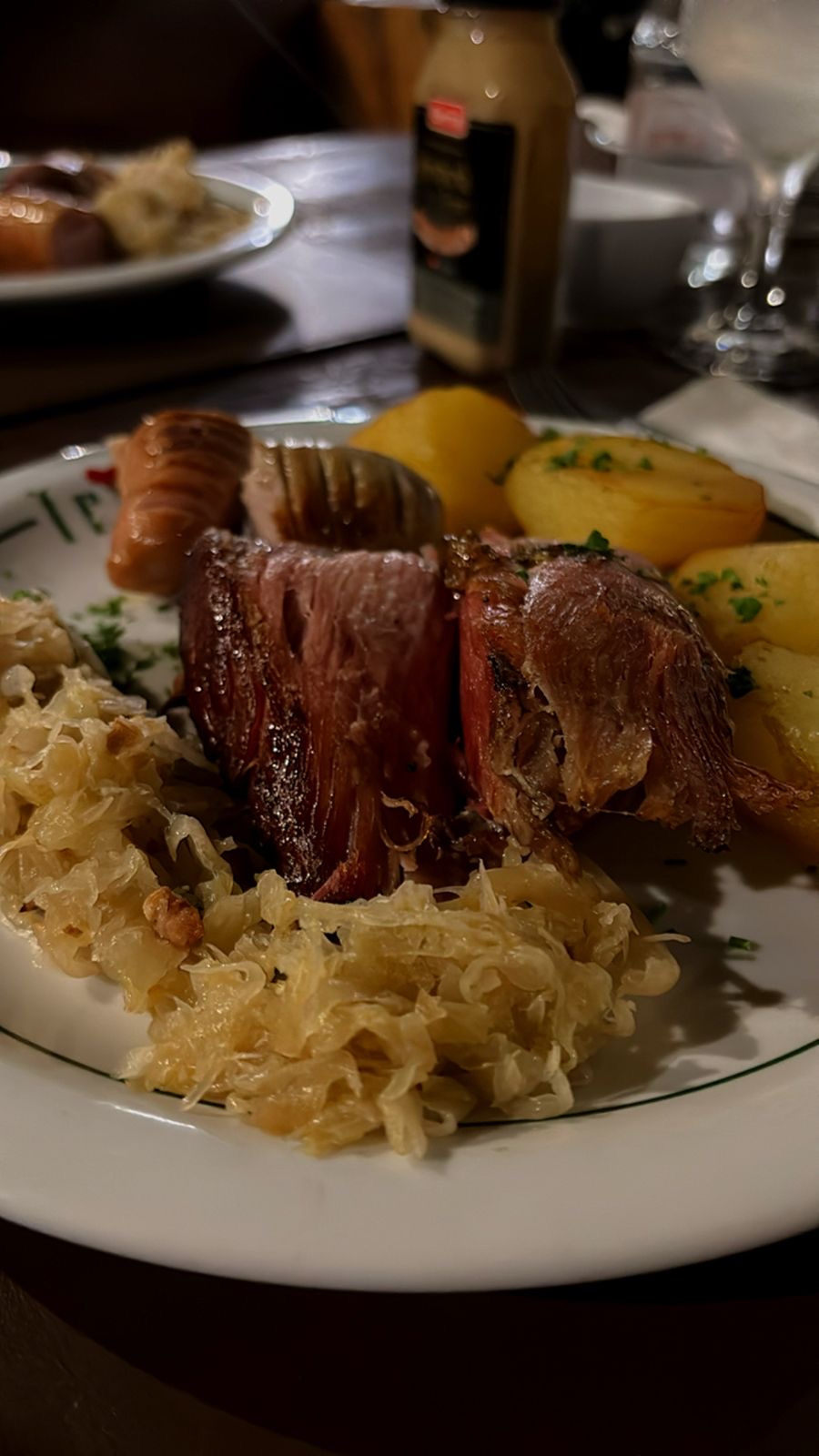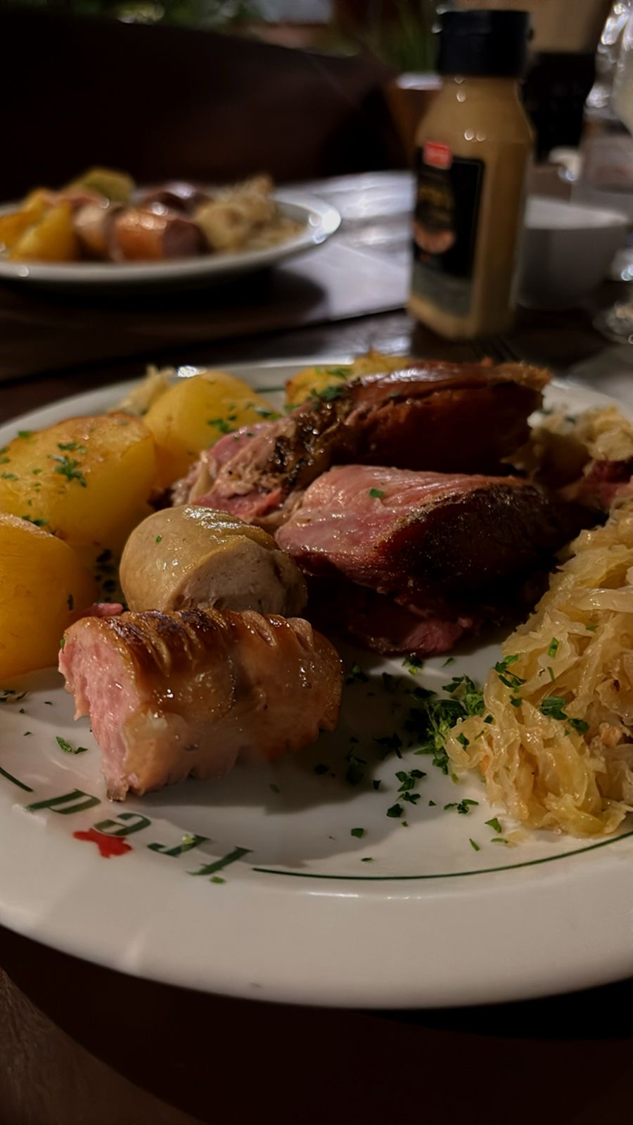 Fui conferir de perto e te garanto: essa viagem gastronômica vale cada garfada. O prato escolhido? O irresistível Misto Alemão. Uma seleção generosa que traz um pouco de tudo o que a casa faz de melhor — batatas sauté douradinhas, chucrute no ponto certo, joelho de porco com casquinha crocante por fora e maciez por dentro, além de linguiças suínas e de vitelo que são simplesmente a especialidade da casa. É o tipo de prato que resolve qualquer indecisão do cardápio e leva você direto às tradições da Baviera.