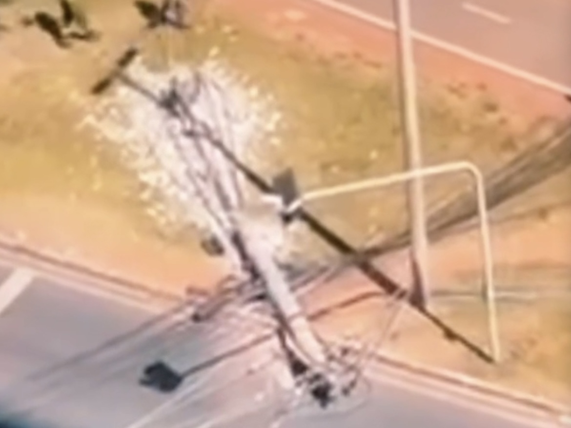Poste cai no Pistão Sul e provoca congestionamento