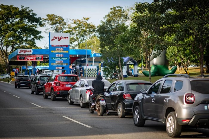 Motoristas enfrentaram mais de uma hora de fila no Posto Jarjour, na Asa Norte, nesta quinta (29/5), para aproveitar o Dia Livre de Impostos, que reduziu o preço da gasolina de R$ 6,65 para R$ 4,52. A ação, organizada pela CDL Jovem DF, busca conscientizar sobre a alta carga tributária no país.
