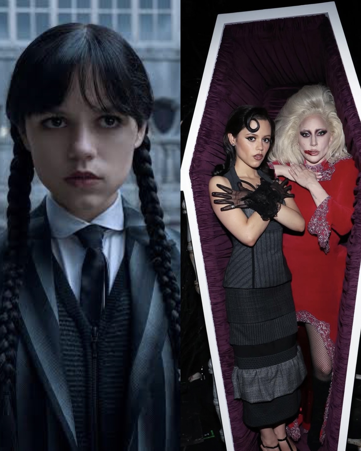 O ponto alto da apresentação foi quando Gaga se juntou a Jenna Ortega, estrela de “Wandinha”, para reviver o famoso baile viral da série, embalado pela música “Goo Goo Muck”, da banda The Cramps.