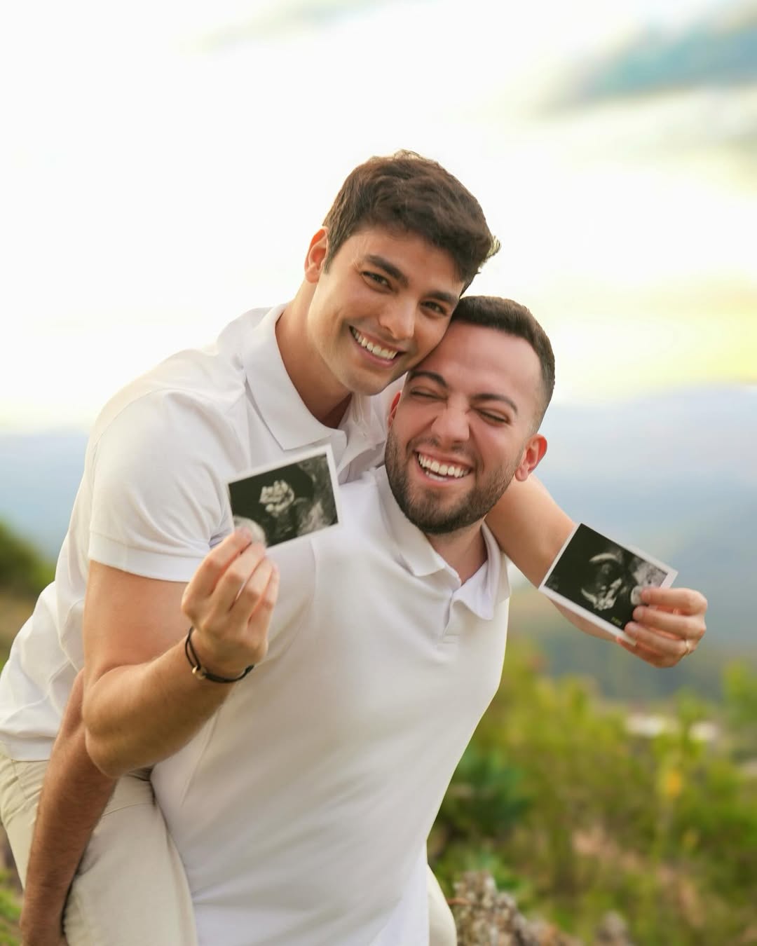 O influenciador Lucas Rangel e seu companheiro, Lucas Bley, comemoraram neste domingo (8) o sexto mês de gestação do primeiro filho do casal. Nas redes sociais, os dois compartilharam registros emocionantes do momento, incluindo uma imagem da barriga da mulher que está gerando o bebê. Apesar de as fotos indicarem o uso da técnica de útero de substituição — popularmente chamada de barriga de aluguel —, o casal ainda não confirmou oficialmente o método escolhido.