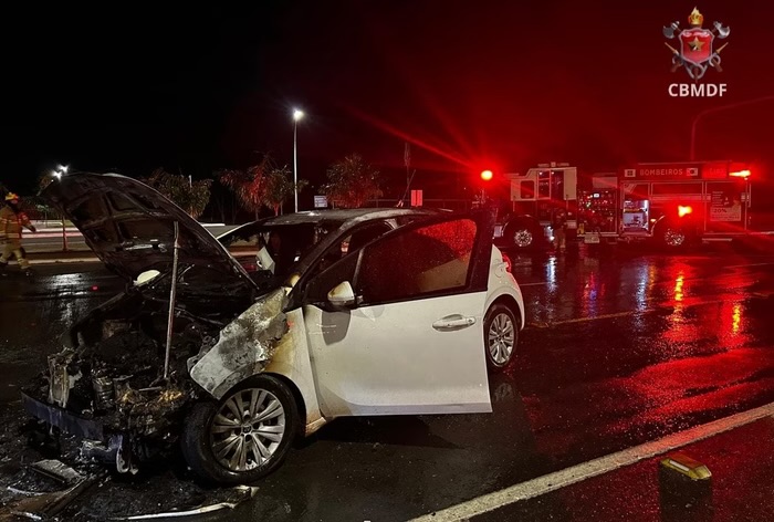 Por volta das 23h, o Corpo de Bombeiros Militar do Distrito Federal (CBMDF) foi chamado para atender uma ocorrência de incêndio veicular. Ao chegarem ao endereço, os militares se depararam com um Peugeot 206 branco, cuja parte dianteira já estava tomada pelas chamas.