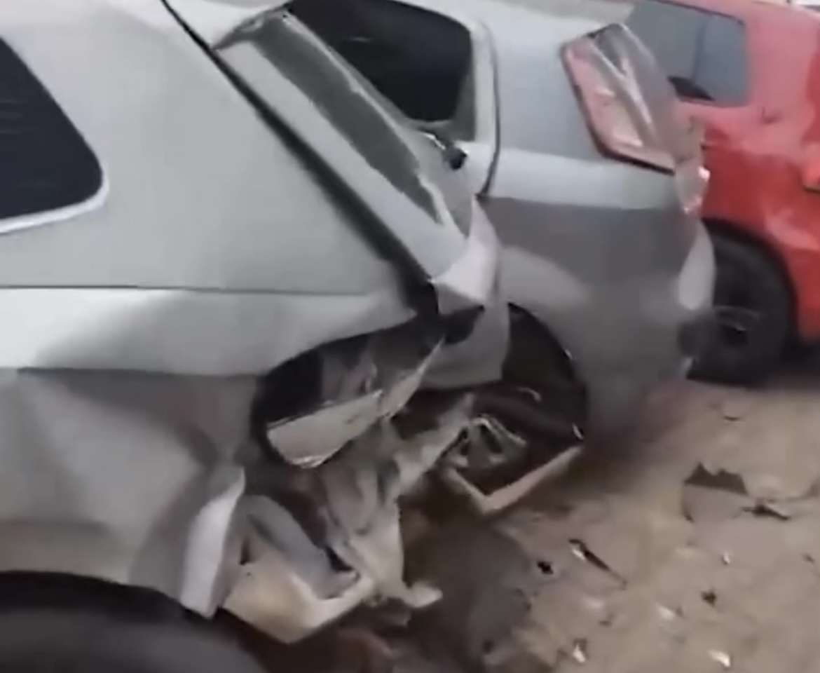 Imagens registradas por testemunhas mostram a extensão dos danos: alguns veículos tiveram os para-choques arrancados e ficaram com a lataria comprometida.