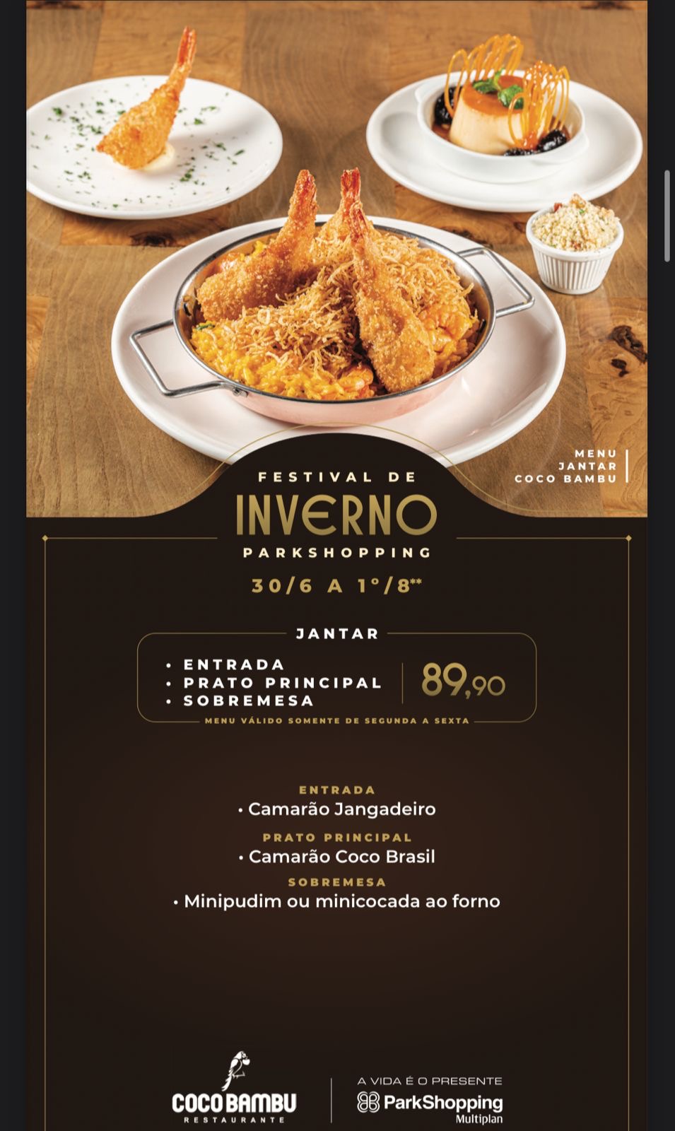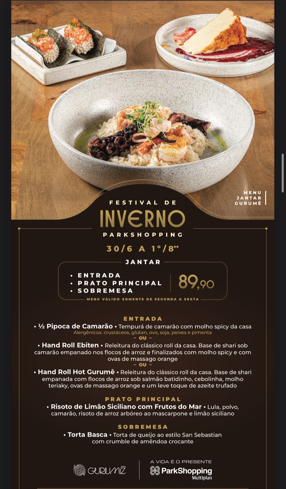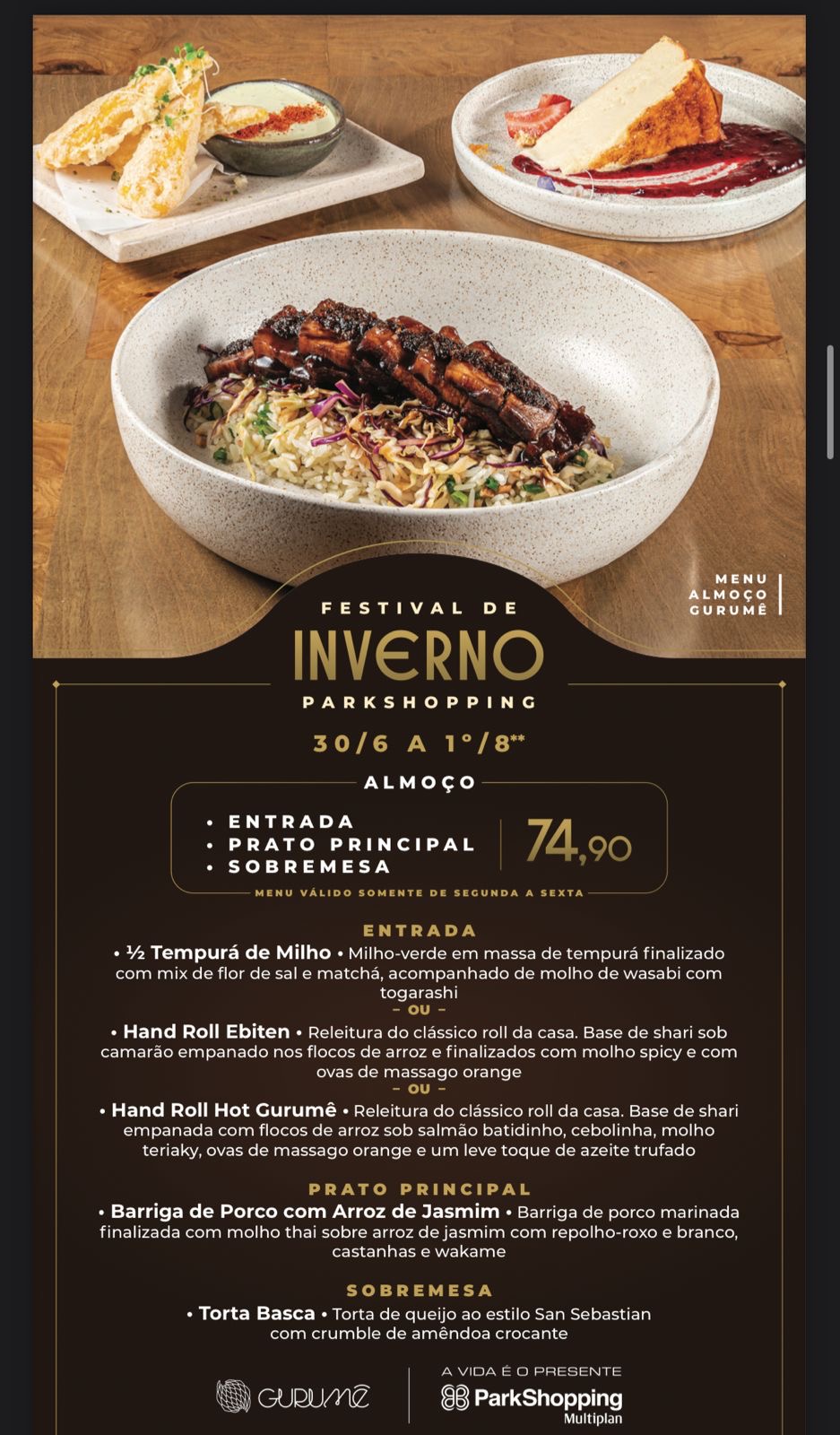 Não perca essa oportunidade de viver uma experiência gastronômica completa, com direito a pratos exclusivos e um mimo irresistível pra levar pra casa. Uma verdadeira celebração de inverno no ParkShopping!
