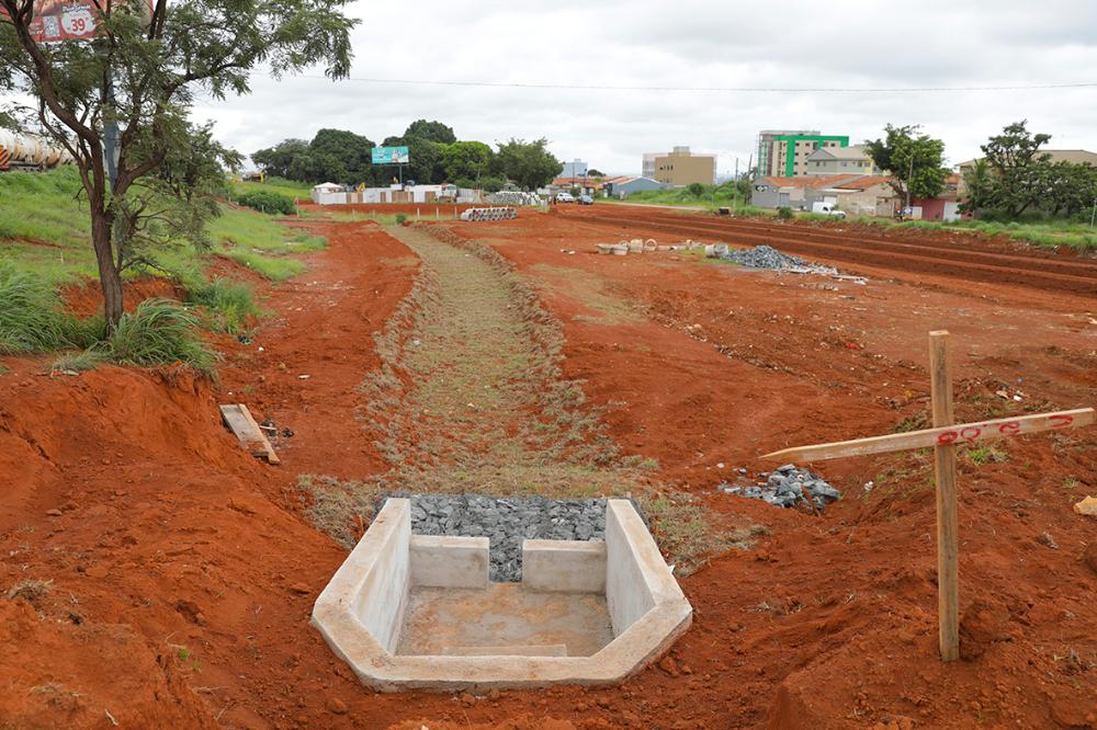 Na marginal já foi feita a limpeza da área, com a retirada do material, e agora a obra está na fase de escavação. Após essa etapa, o próximo passo é a redução do subleito, ou seja, baixar o nível do solo, para então iniciar a camada final. Uma das bacias está localizada no início dessa via e a outra no final, com o objetivo de conter a água e direcioná-la posteriormente ao Rio Santa Maria.